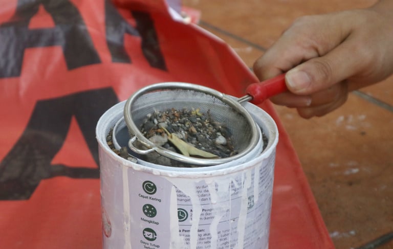 The workshop continued with artistic representation experiment by collecting dust from several spots with identification of potential pollutants from the surrounding.