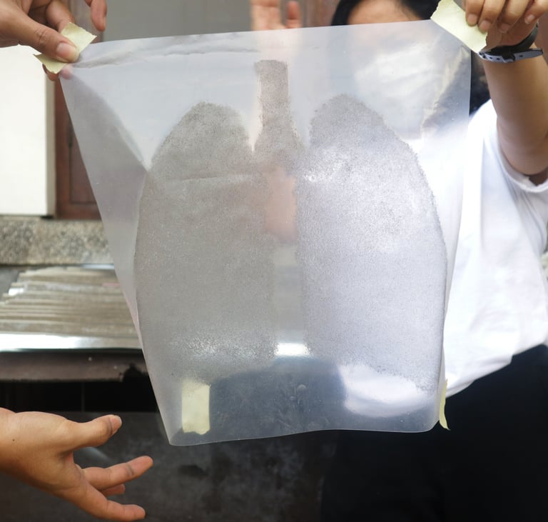In the initial workshop, students were introduced to the broader context of urban air pollution in the province, including its main sources and the risks it poses to everyday life. A discussion of PM2.5 as a particle size highlighted why this danger is so hard to sense and communicate, which helps explain why public urgency often lags behind the harm. The workshop then guided students to use simple methods and readily available materials such as paper plate and vaseline to capture and make the pollution legible.